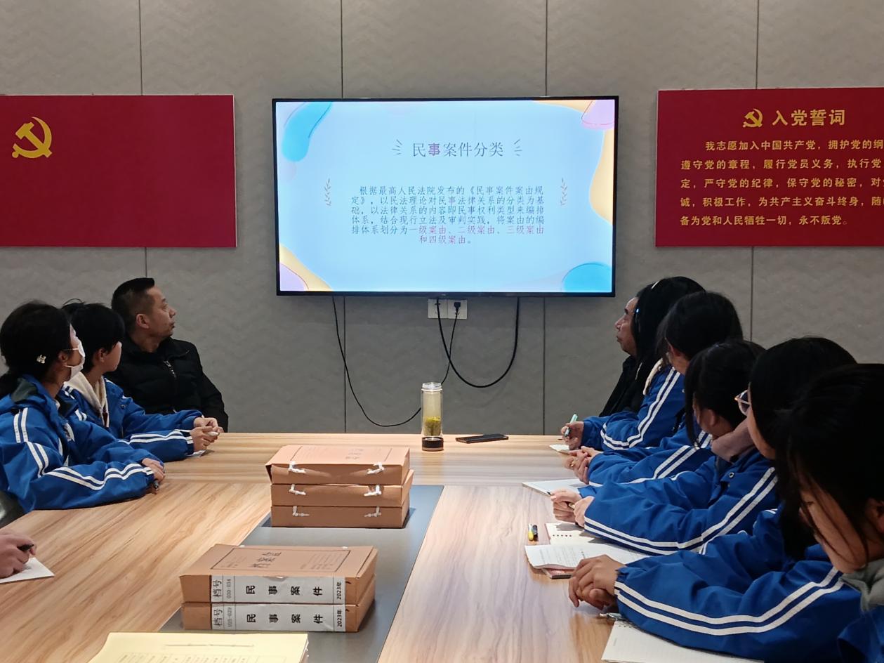 本次活动由妇儿维权部部长汪辉律师主持,她利用生动的案例和通俗易懂的语言,从民事案例分享、民事案件立案流程和程序两方面,深入浅出地讲解,将法治的种子播撒在学生的心中,加深了同学们对法律法规的认知,引导同学们树立正确的法治观念。 随后,同学们提出了离婚冷静期、家暴、赡养与抚养义务、网络霸凌等社会关注的热点问题,在场律师们耐心又专业的一一给与解答,并围绕“拾金不昧”在法律层面的评定进行了精彩的交流和讨论。通过和律师们的互动,同学们感受到法律不是简单的条文规定,而是保障我们每一位公民权益的基石,更明白了全社会普法、学法、守法的重要性。 律所还让同学们观看了大众熟知又具有代表性的民事案件档案资料,近距离感受法律的神圣和威严。