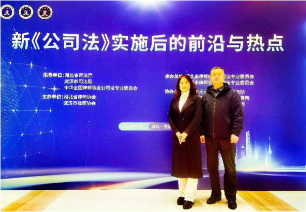 2025年3月29日,“新《公司法》实施后的前沿与热点”学术研讨会在武汉市举办。活动由湖北省司法厅、武汉市司法局、中华全国律师协会公司法专业委员会指导,湖北省律师协会、武汉市律师协会主办,湖北省律师协会公司法专委会、武汉市律师协会公司法专委会承办。来自全国人大常委会法工委、湖北省人大常委会法工委、中国全国律师协会、湖北省律师协会及高校、企业家代表500多人参加活动。 湖北省律师协会公司法专委会副主任、Q彩网副会长李智,Q彩网公司法专业委员会主任曹贞赴汉参加了本次学术研讨会。