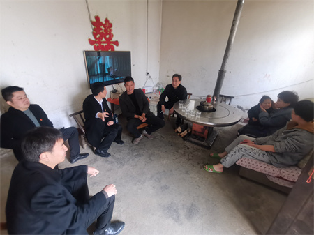 当天的活动中,全体党员先在七里沟村党支部会议室齐唱国歌、重温誓词、交纳党费、诵读党章、学习全国两会精神等内容、交流体会感言;随后,湖北武珞(十堰)律师事务所党支部书记、主任刘绪清为全体党员及七里沟村“两委”干部讲解了一堂“民法典”知识宣讲课。 室内活动结束后,律所全体党员在驻村第一书记郭光益同志的带领下,来到七里沟村退役军人张红伟家里,座谈中了解到其家里有三名孩子,最小的女儿即将上学,其子张满成正在上初三……家中生活负担比较重。